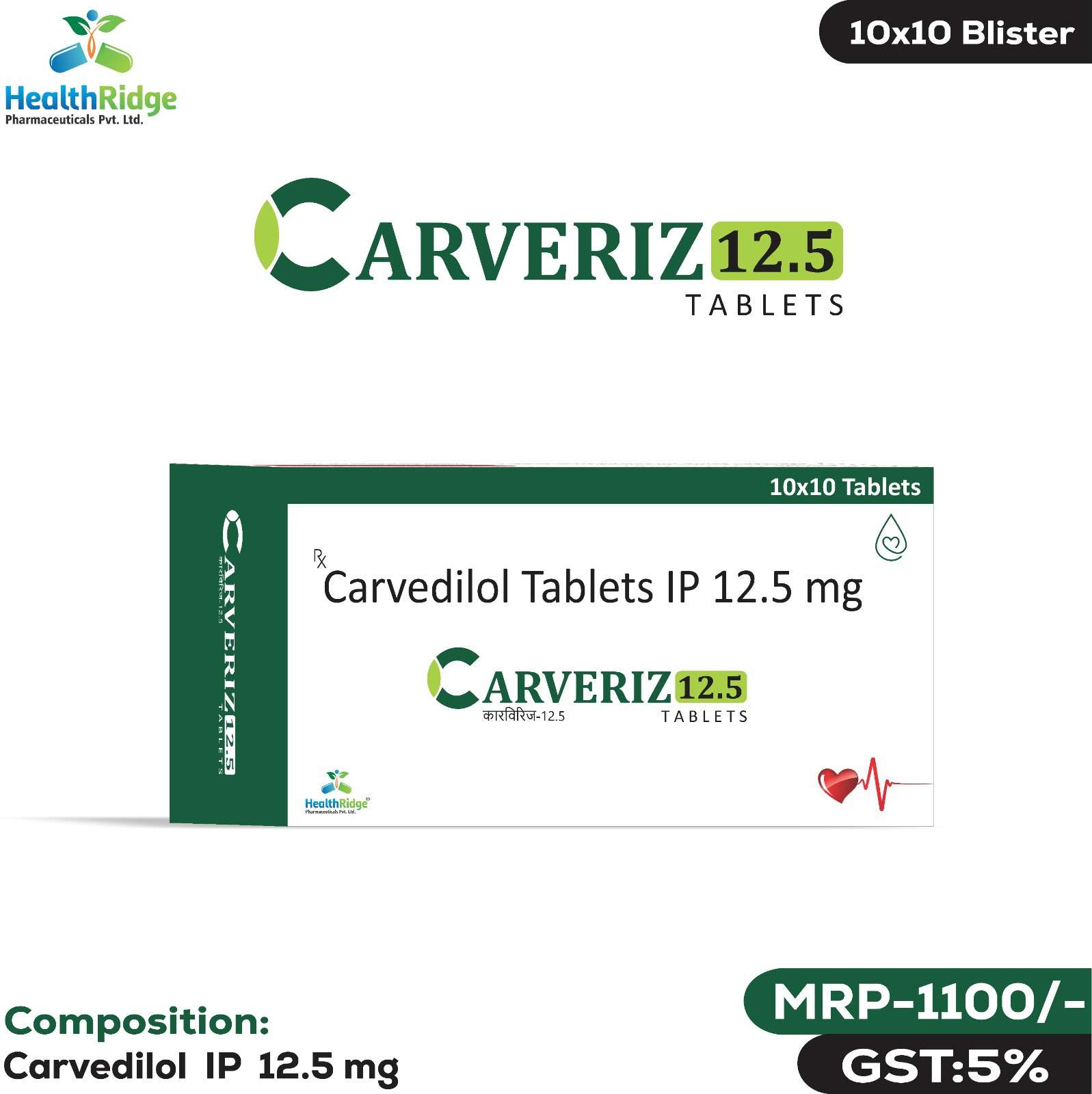 Compostion : Carvedilol Tablets IP 12.5 mg