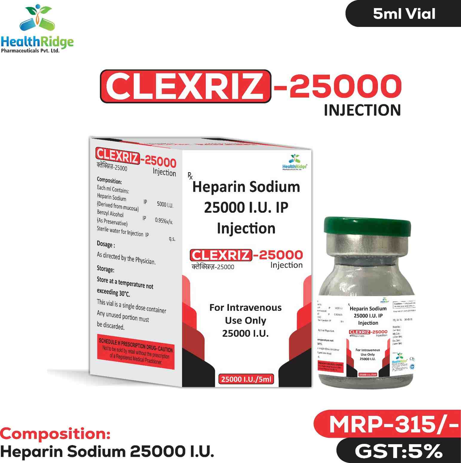 Detail:- Heparin Sodium 25000 I.U. It not only prevents the formation of harmful blood clots in the legs, lungs, and heart but also stops them from growing bigger.