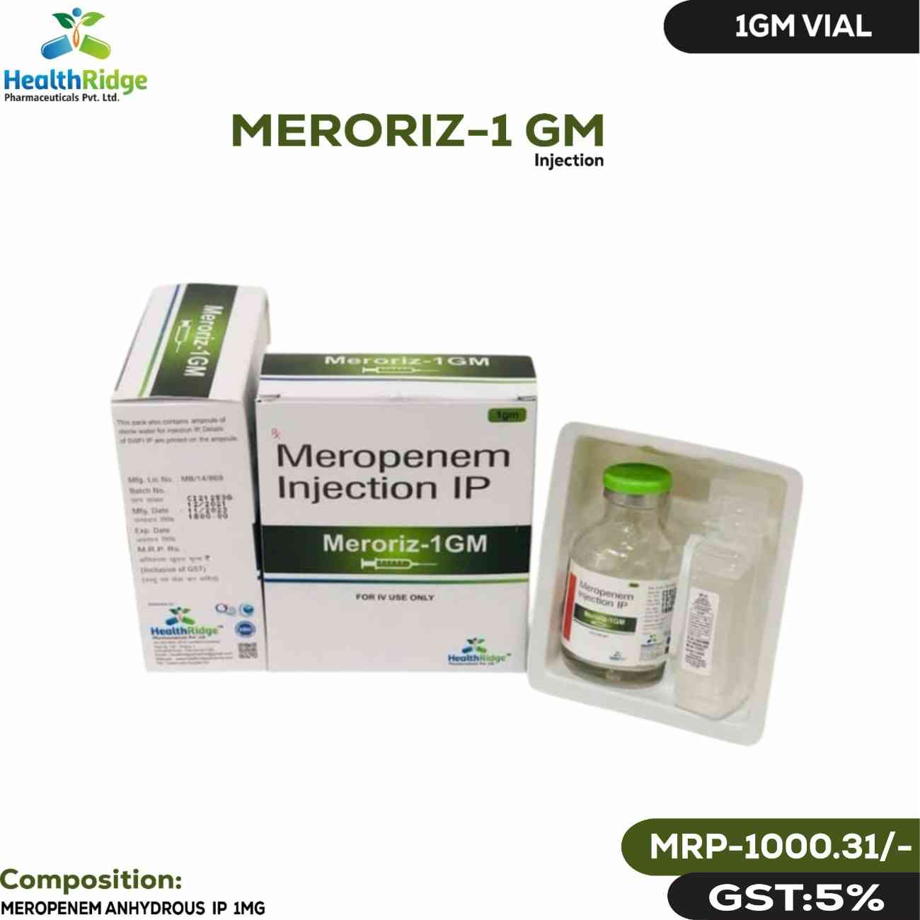 Compostion : MEROPENEM ANHYDROUS IP 1MG