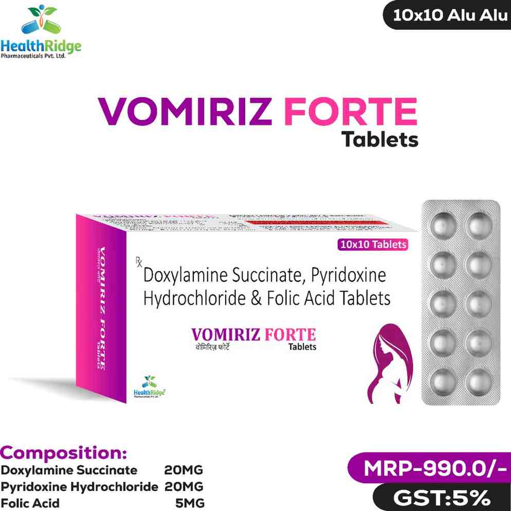 Detail:-DOXYLAMINE 20mg + PYRIDOXINE 20mg +FOLIC ACID 5mg It is a combination medication used to manage nausea and vomiting, particularly during pregnancy.